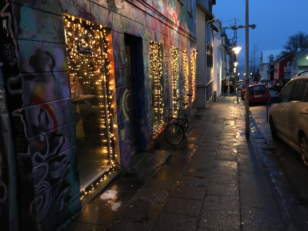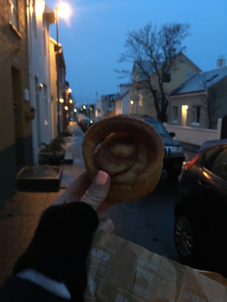 On the upside, I’ve already learned that Iceland has some bomb pastries. While wandering around in the dark I stumbled across a small bakery called Brauð & Co. It caught my attention with it’s colorful wall lined with lights and drew me in through the window into their kitchen. It was everything I could have ever wanted out of a cinnamon croissant.