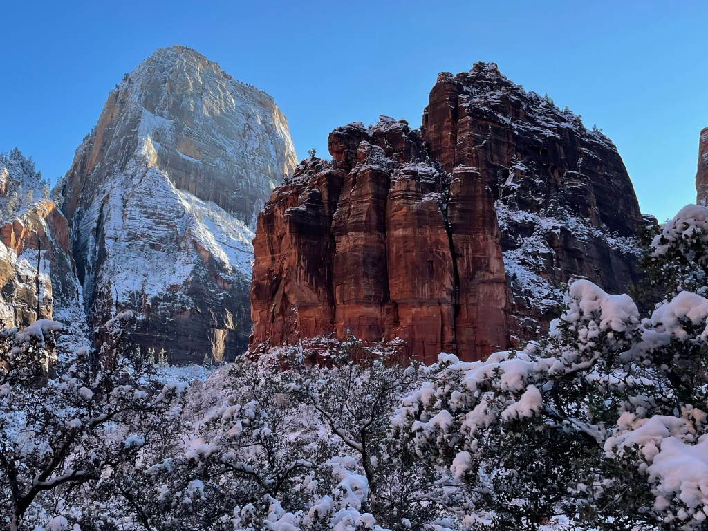 The northwest side of Zion National Park is primarily only visited in the warmer times of year as well because of the snow and icy conditions in higher elevations. On this side of the park you will find the Kolob Visitor Center, some more remote and rugged exploring opportunities (including canyoneering options), and some other less frequently trafficked hikes. I have not been to that side of the park yet, but what I can say is that it is not as developed as the Springdale area, and that you’ll be closer to the “wild” there.