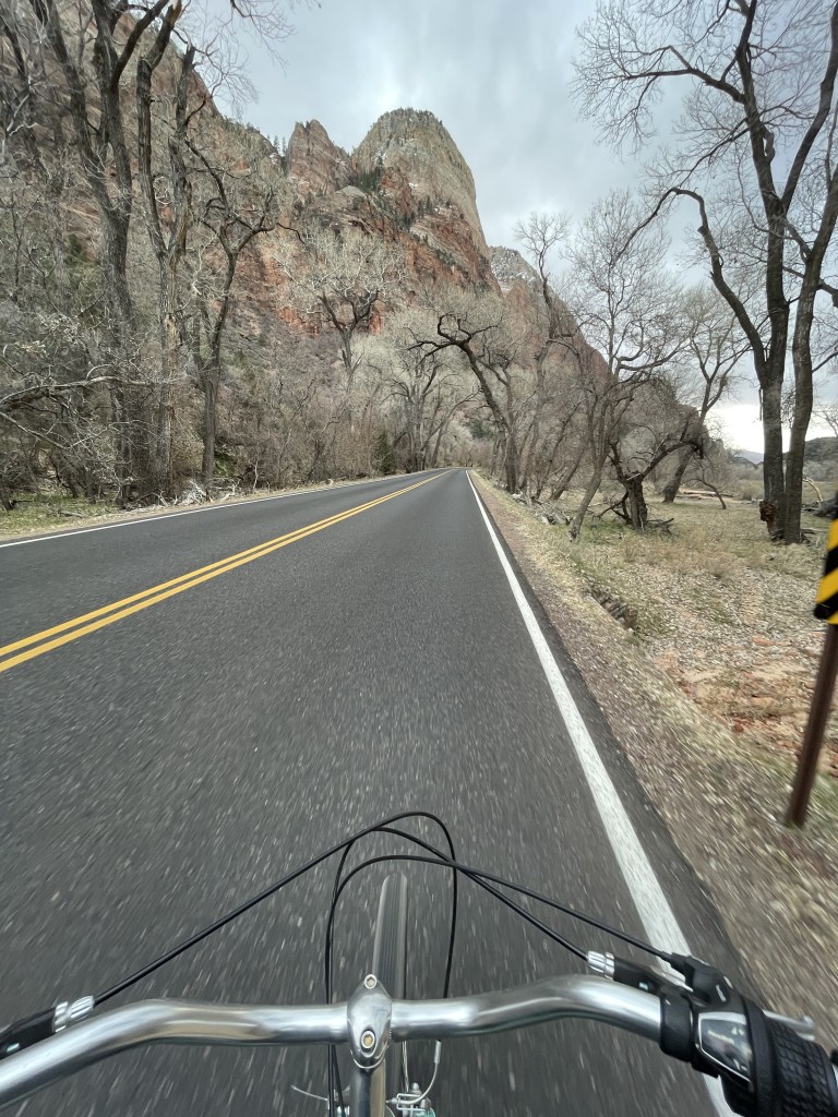 An alternative way to see the park is to ride an electric or regular bicycle. You can rent these in Springdale. You can cycle on the main canyon road and get to the bus stop areas on your own, BUT please be mindful of vehicle traffic and be aware the shuttles have the right-of-way. You are cycling uphill to get back into the canyon, but cruising downhill when exiting. Bikes are essentially the only way to get to the major trailheads without the shuttles with the exception of the small window when the shuttle does not operate during the winter, which means if you are looking to do a sunrise hike during the busy season, you’re either walking to the trailhead in the dark or riding a bike.