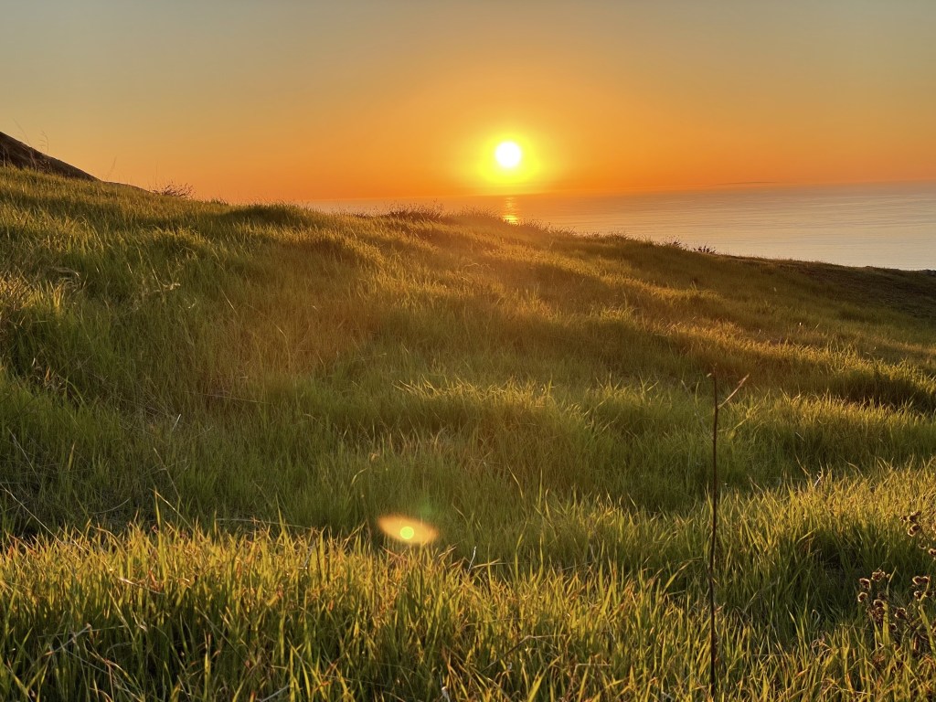 The hills are covered in lush green meadows in the spring, beginning from late winter through early summer, then turn to brown and stay that way for the rest of the year into the next rainy season. There are lots of colorful little wildflowers all over the place in spring/summer. Harsh winds result in the island being pretty dry for the majority of the year, but the severity varies by season, being more extreme in the cold months. Fog is common year round, especially in the mornings until the marine layer burns off.