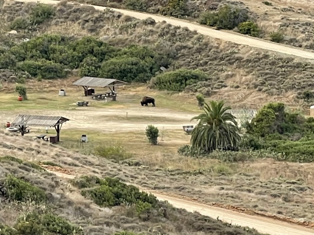 Bison are cute and fluffy, and we all have fantasies about cuddling with one, but they are not your friends. We are visitors in their home! Please treat them with respect, give them the space they need to live their life in peace, and DO NOT approach them for any reason. They are not afraid of humans, and often hang out right in the Little Harbor Campground. They will charge at you, and they have attacked visitors in the past, but they will probably leave you alone unless you are acting like a fool. Keep nature wild.