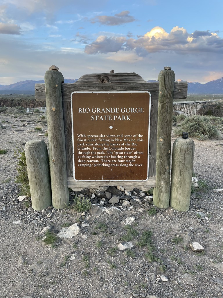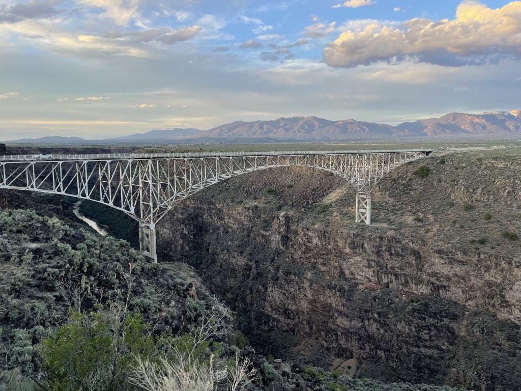 On your way there to/from Santa Fe, you pass by Rio Grande Gorge State Park (about 1.5-2 hours northeast of Santa Fe, close to Taos/Taos Pueblo). This can be a quick or longer stop on your trip, and there are also many camping options in this area. A quick detour to the north will bring you to Rio Grande Gorge Bridge, where you can enjoy really incredible views of this famous river from above. There is a small roadside rest area there with parking making this a very convenient pit stop.