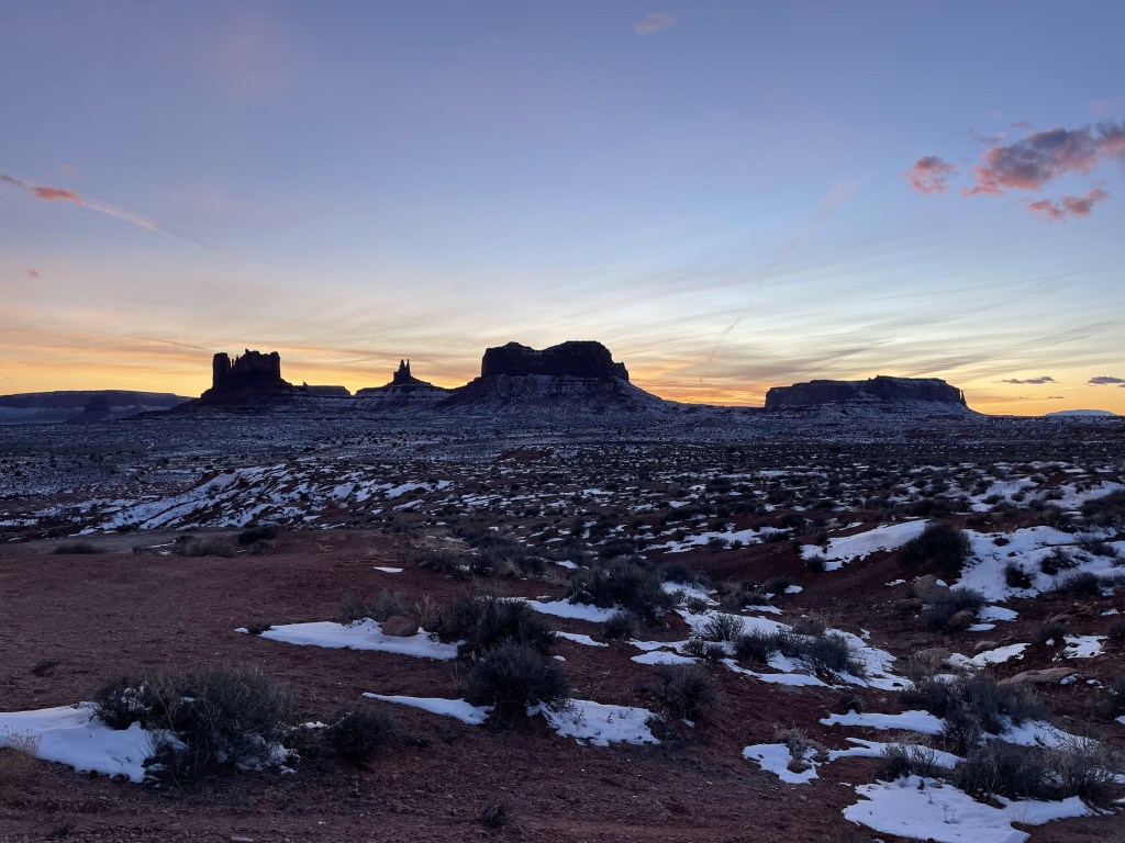 Highway 163 runs between the communities of Kayenta, Arizona and Bluff, Utah through the northern region of Navajo Nation. This road is typically always open, and has absolutely incredible views of the famous landmark that is Monument Valley. There is no toll to drive this public road, so even if the visitor center is closed, you can still enjoy this destination. Roadside pullouts are frequent and there may be some local sellers along the route with small art and souvenir stands. Don’t miss your opportunity to hop out of the car at the famous Forrest Gump viewpoint and get your “running” photo next to the road! Do not stop traffic and stay out of the middle of the road– there is a little dirt platform area off to the side for a safer option. Some viewpoints are slightly off the main road and offer different angles for viewing.